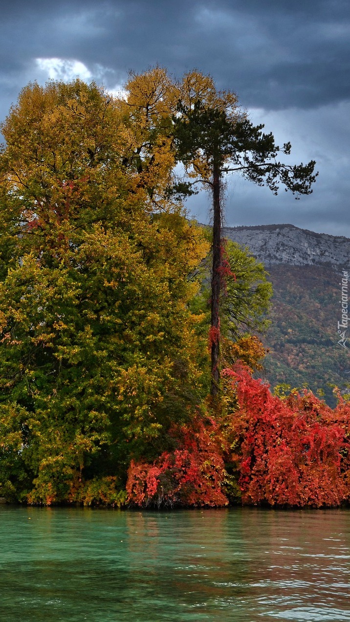 Edytor tapety: Wyspa z jesiennymi drzewami na jeziorze
