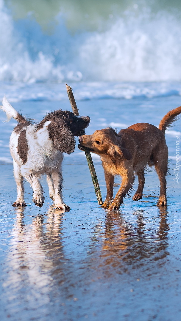 Edytor tapety: Zabawa dwóch psów na plaży