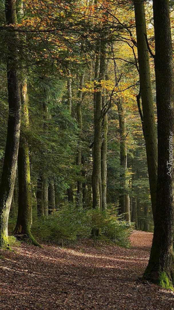 Edytor tapety: Opadłe liście na leśnej ścieżce