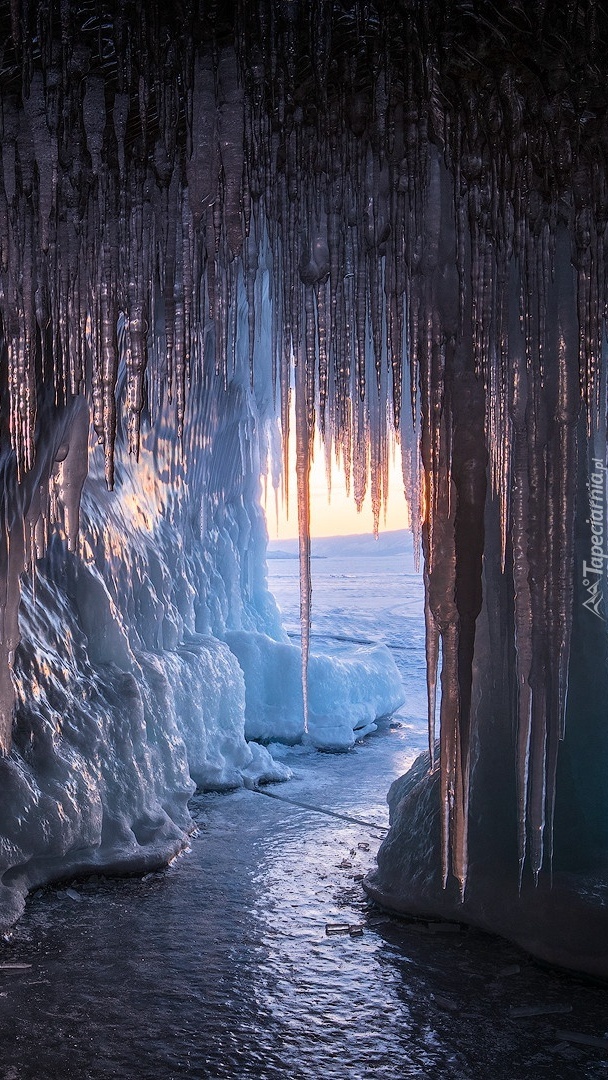 Edytor tapety: Sople w grocie przy jeziorze Bajkał