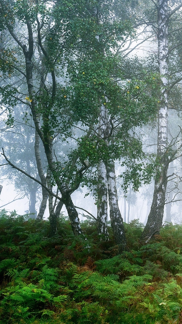 Edytor tapety: Brzozy w zamglonym lesie