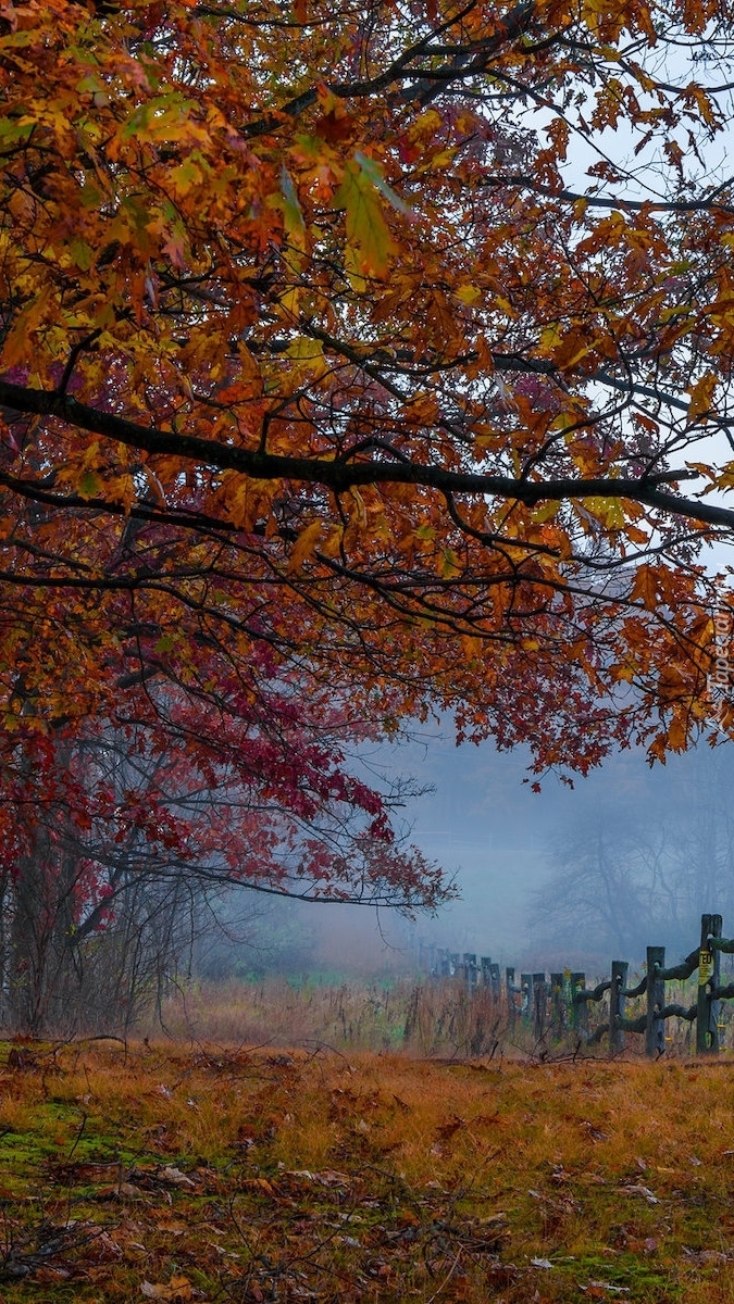Edytor tapety: Jesienne drzewa przy ogrodzeniu