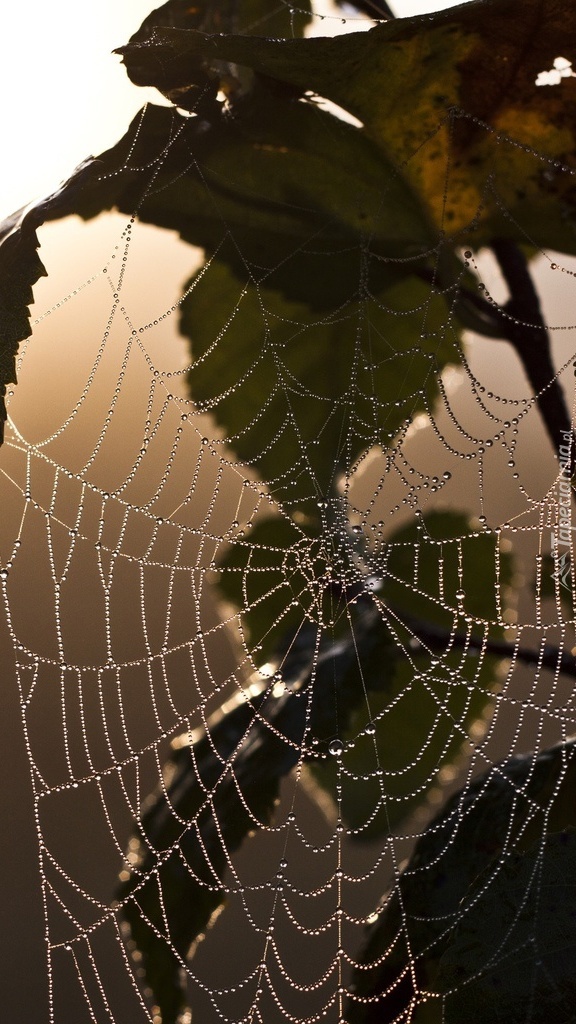 Edytor tapety: Pajęczyna na jesiennym liściu w makro