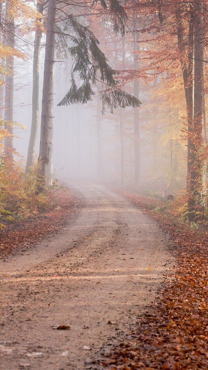 Edytor tapety: Droga i jesienne drzewa we mgle