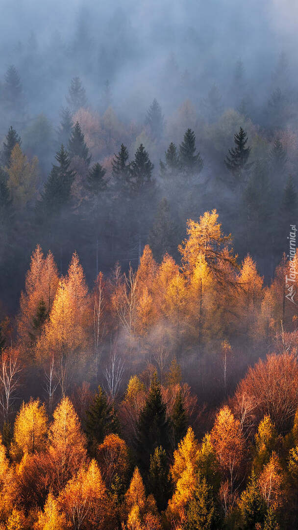 Edytor tapety: Jesienne drzewa we mgle