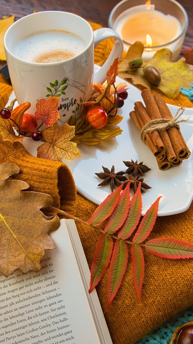 Edytor tapety: Jesienna kompozycja z kubkiem kawy