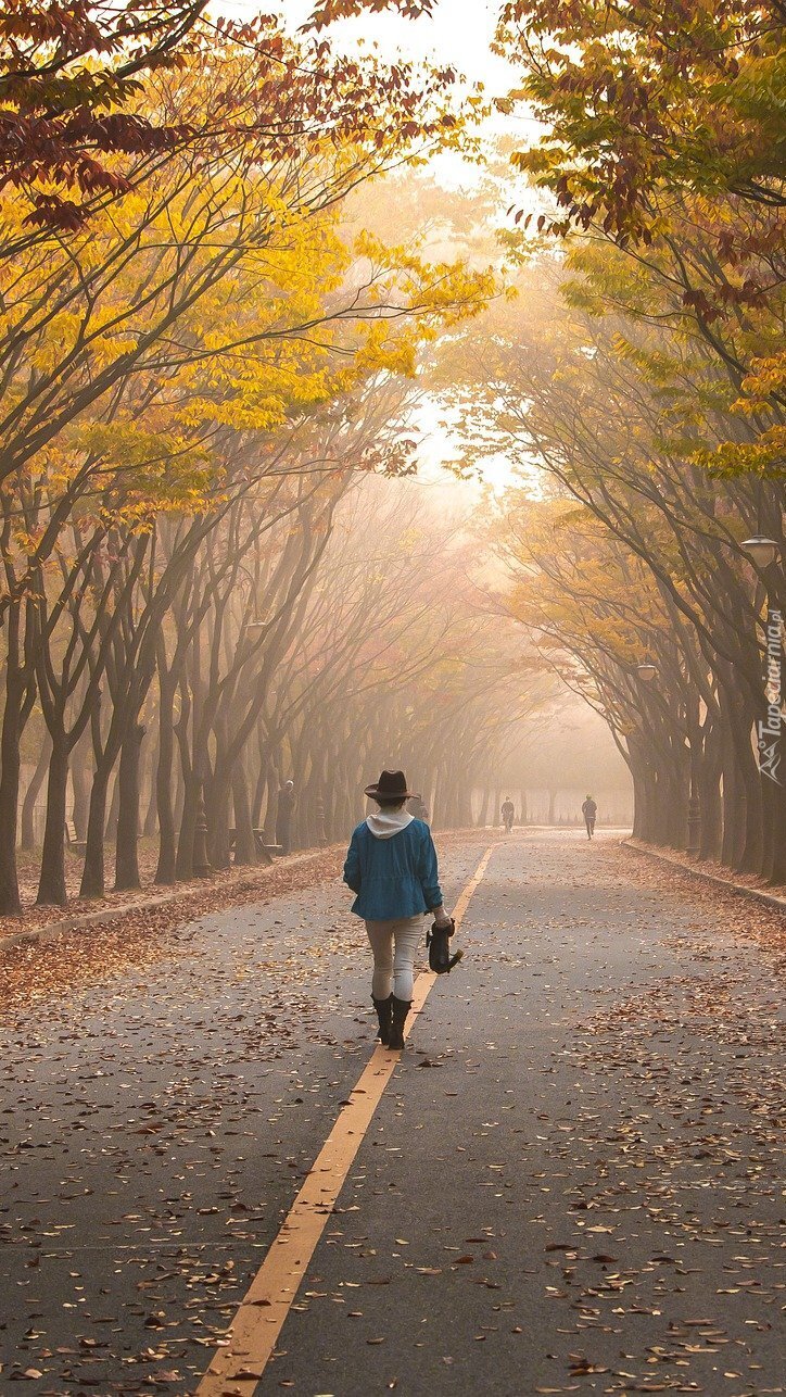 Edytor tapety: Kobieta na drodze pod drzewami
