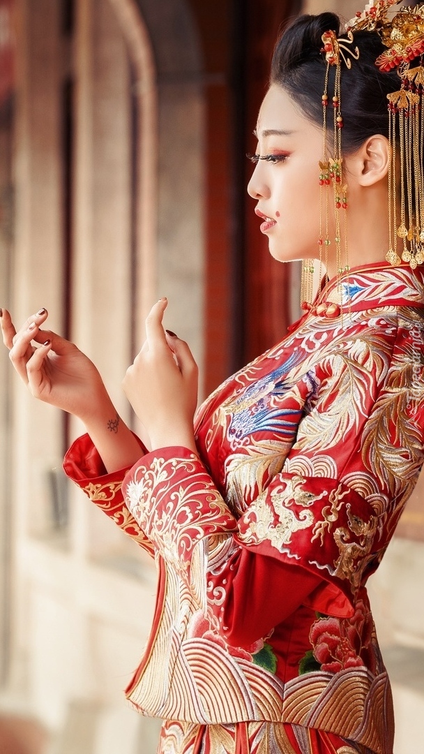Edytor tapety: Azjatka w stroju ludowym