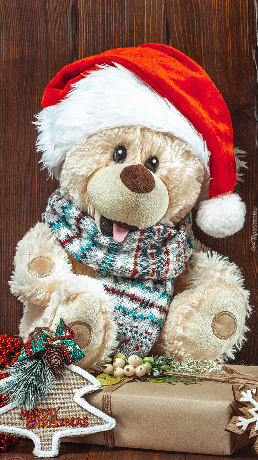 Edytor tapety: Pluszowy miś w czapce Mikołaja