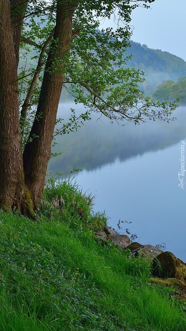 Edytor tapety: Drzewo na brzegu jeziora