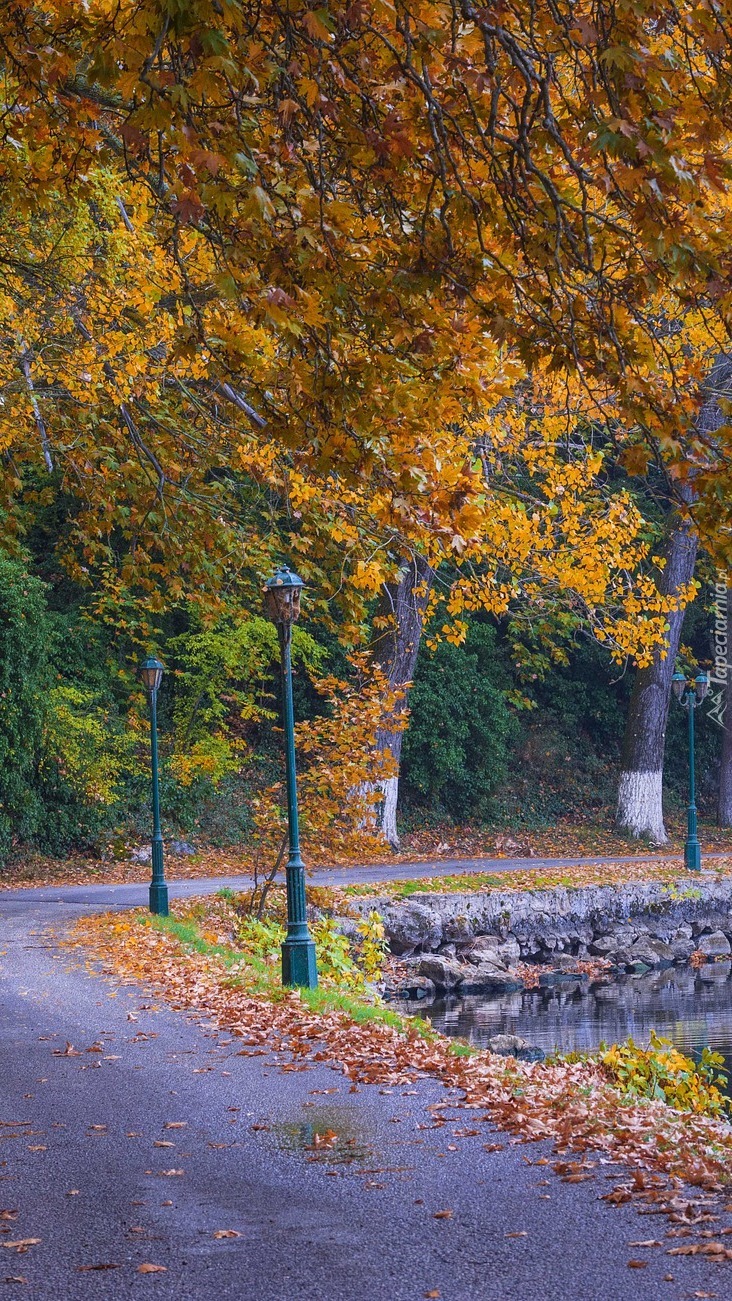 Edytor tapety: Latarnie pod jesiennymi drzewami w parku