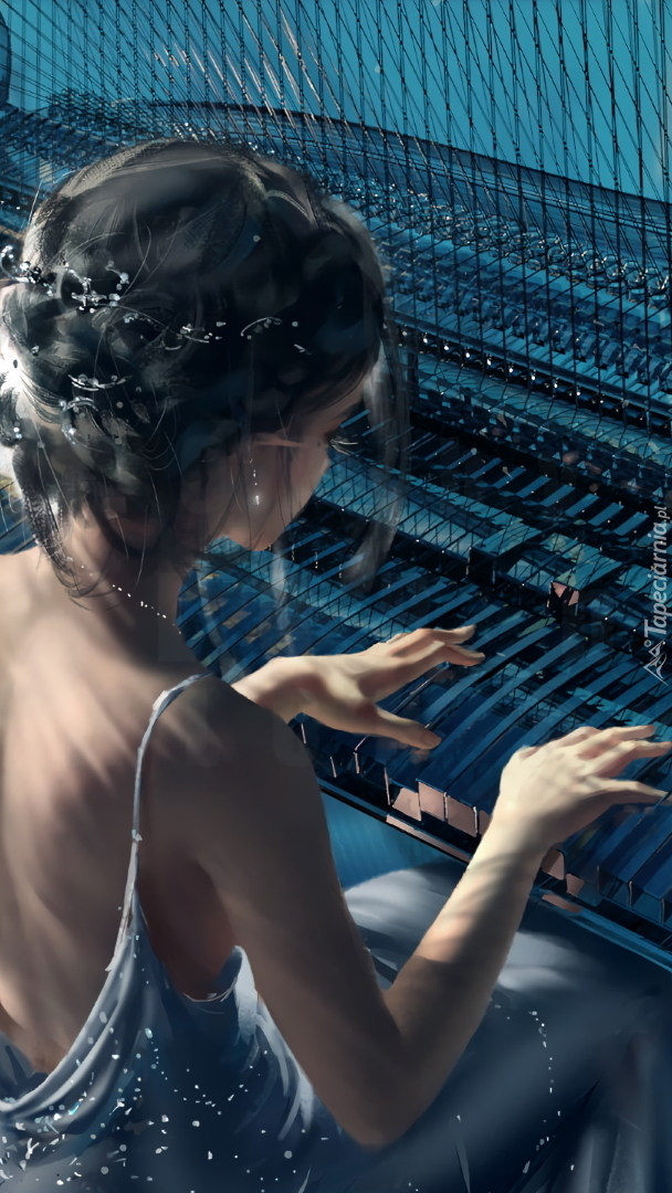 Edytor tapety: Dziewczyna przy fortepianie w grafice