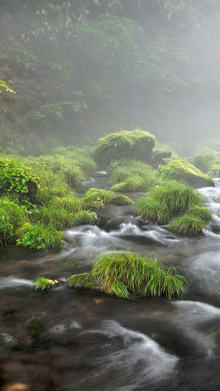 Edytor tapety: Trawa na kamieniach w rzece