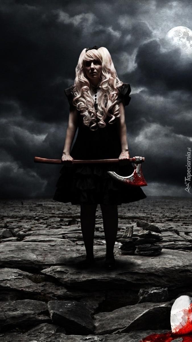 Edytor tapety: Kobieta z zakrwawionym toporem