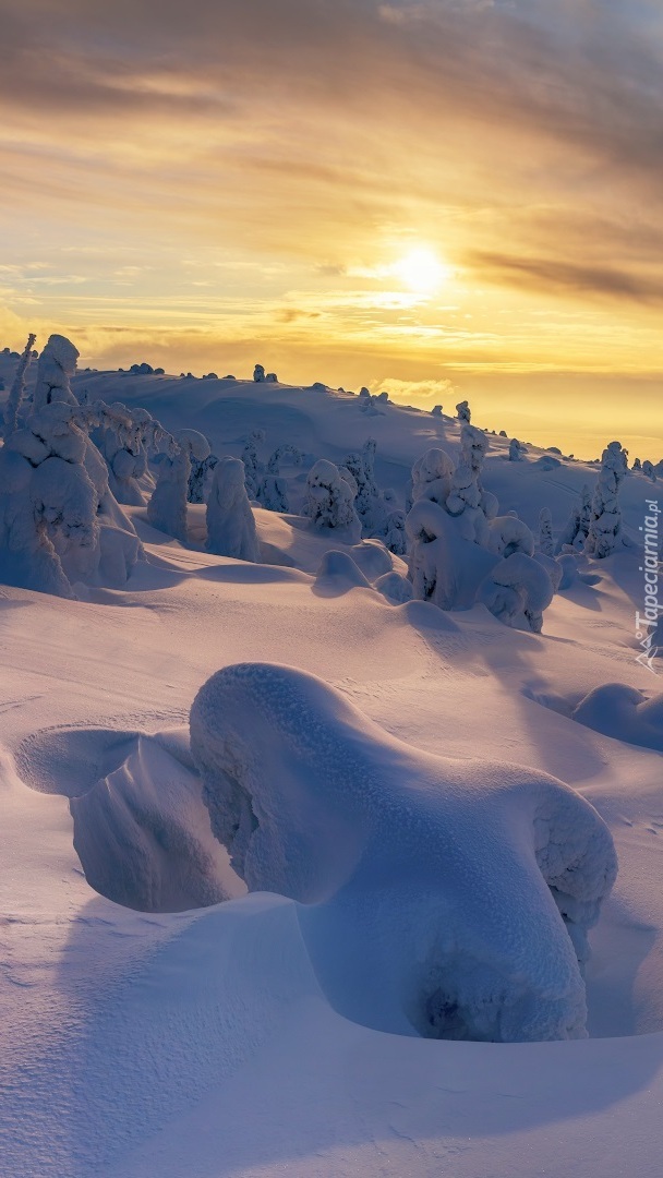 Edytor tapety: Zasypane śniegiem drzewa
