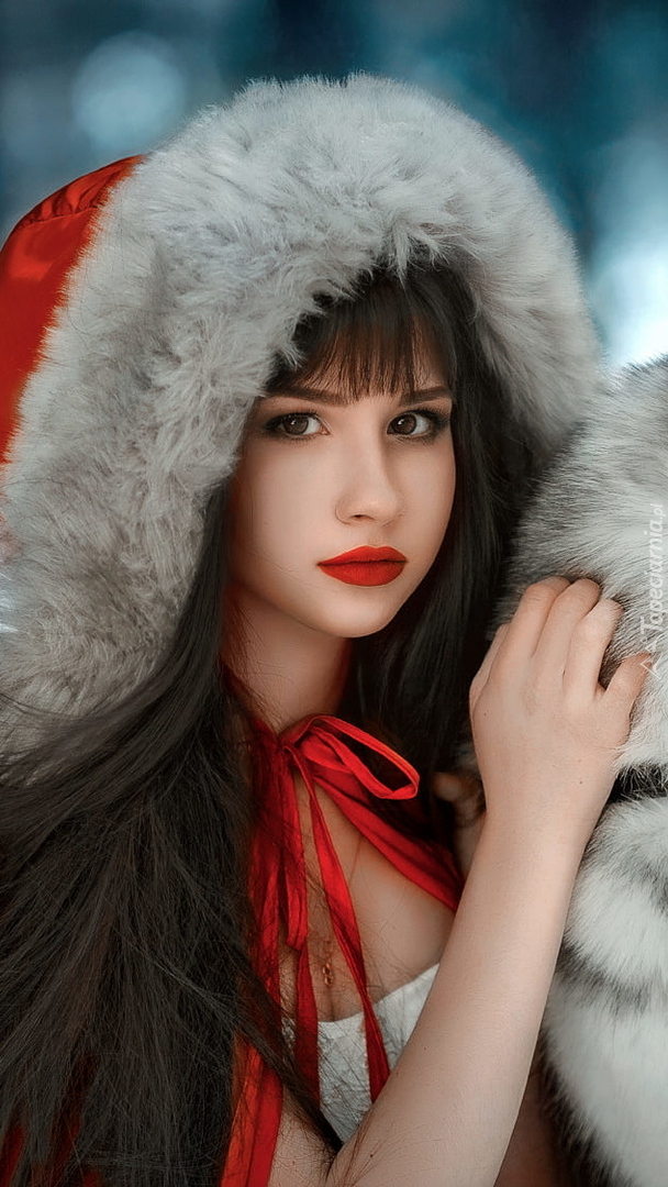 Edytor tapety: Dziewczyna w czerwonym płaszczu z kapturem