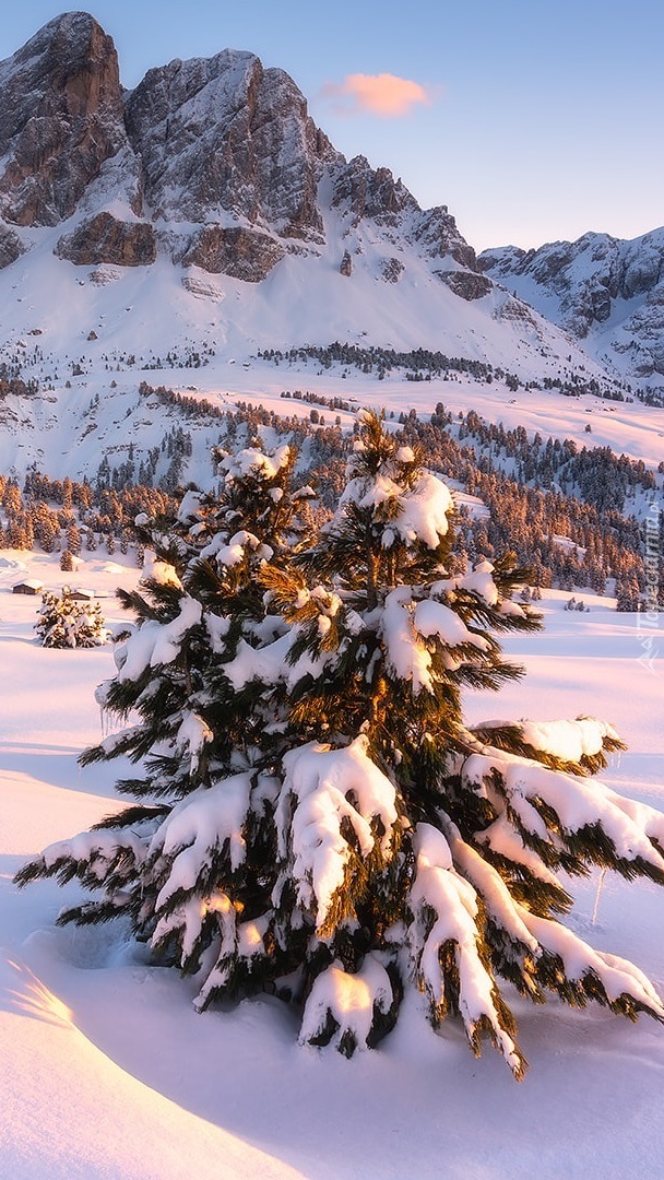 Edytor tapety: Góra Peitlerkofel w zimowej scenerii