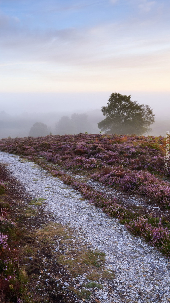 Edytor tapety: Droga na zamglonym wrzosowisku