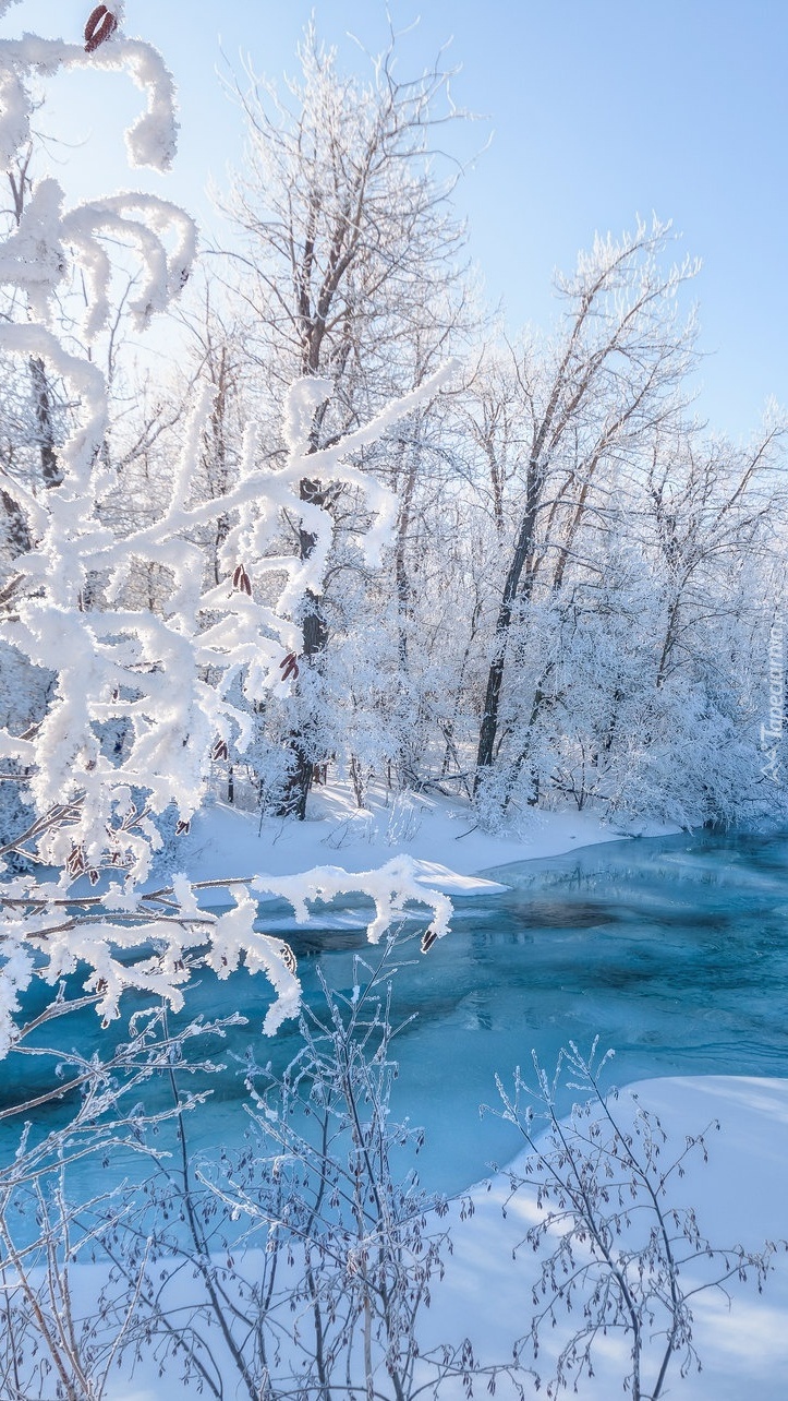 Edytor tapety: Ośnieżone drzewa nad rzeką