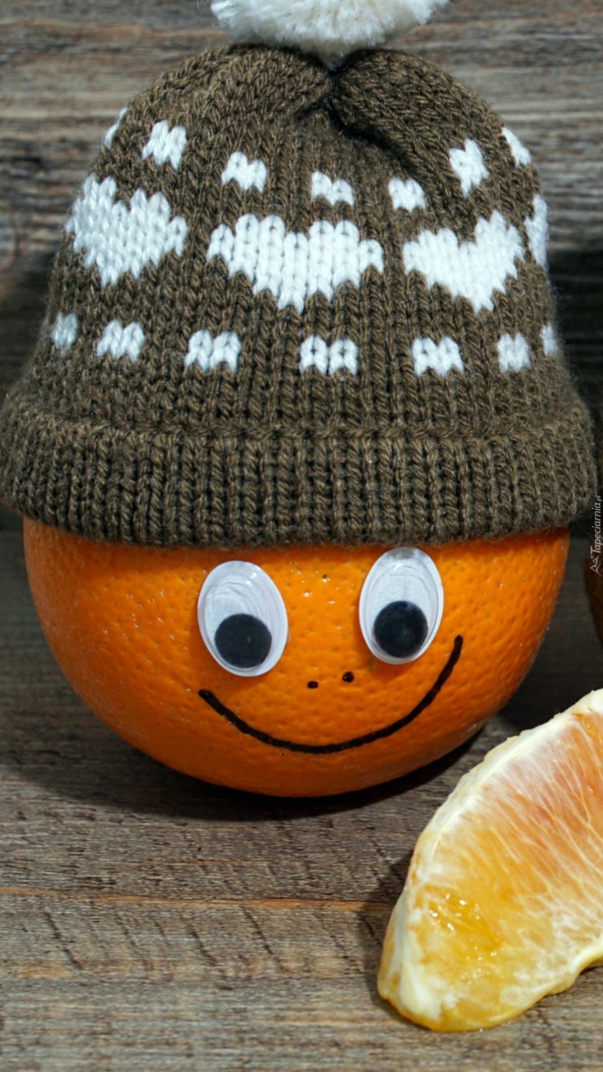 Edytor tapety: Uśmiechnięta pomarańcza w czapce