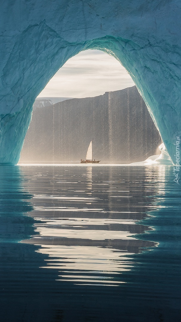 Edytor tapety: Żaglówka w łuku góry lodowej