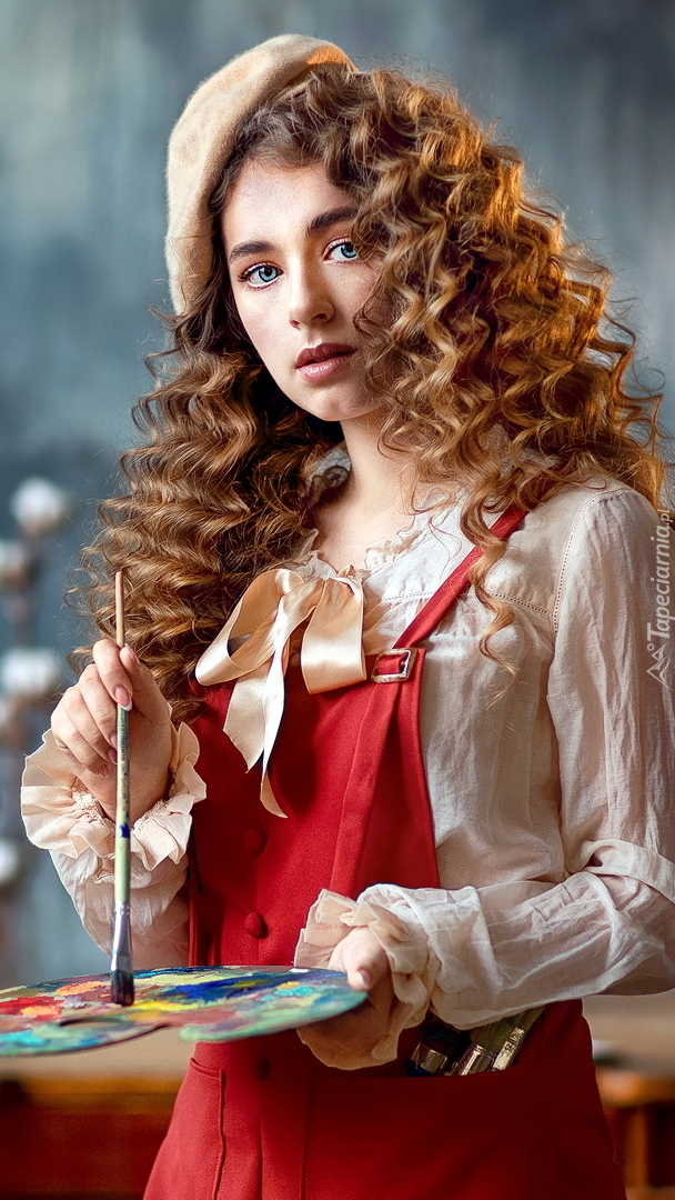Edytor tapety: Rudowłosa dziewczyna z farbami