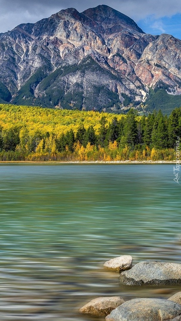Edytor tapety: Jezioro na tle gór