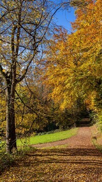 Edytor tapety: Opadłe liście na leśnej ścieżce
