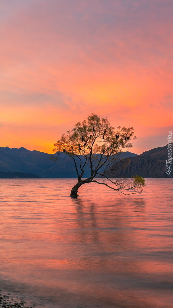 Edytor tapety: Pochylone drzewo w jeziorze Wanaka