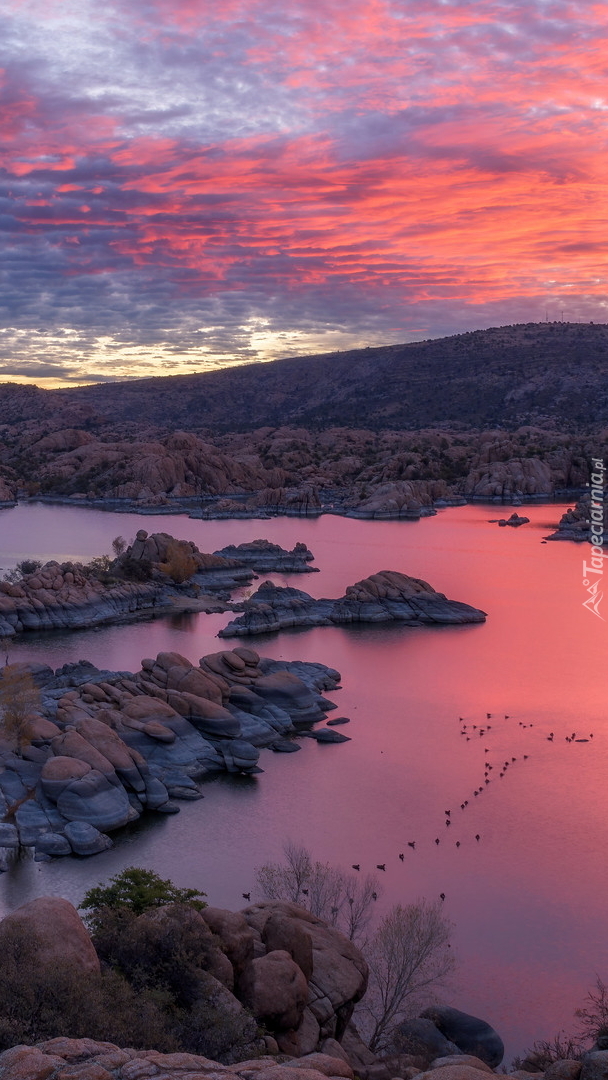 Edytor tapety: Wschód słońca nad jeziorem Watson Lake