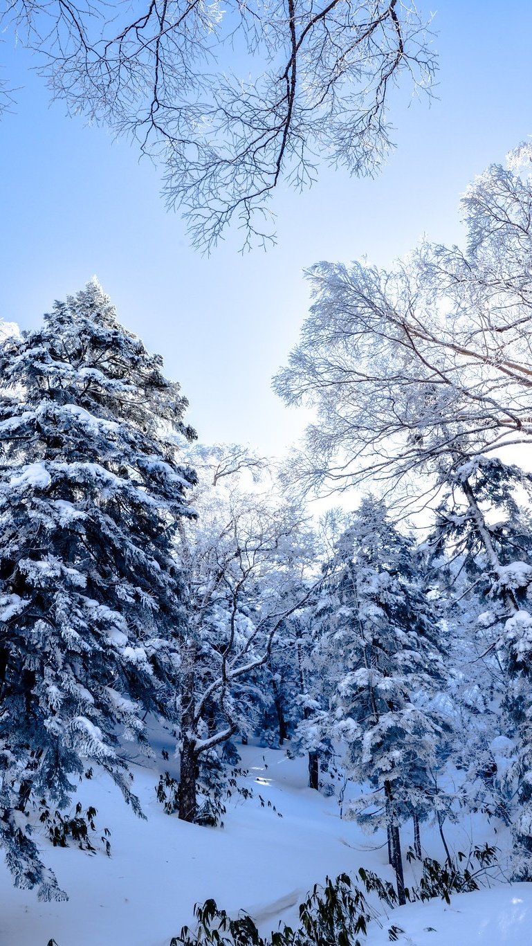 Edytor tapety: Ośnieżone drzewa w lesie