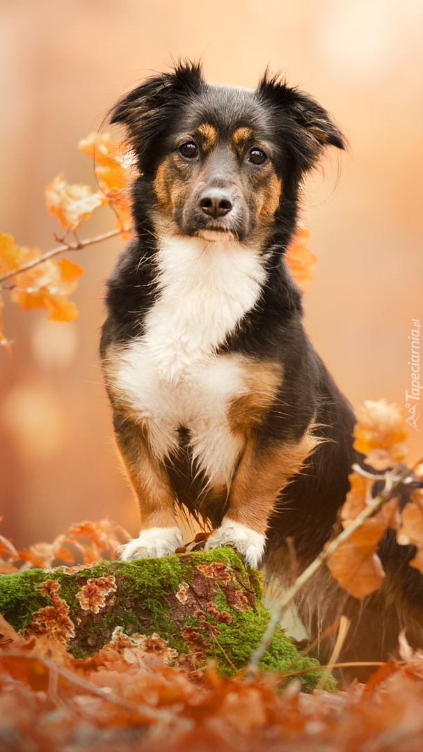 Edytor tapety: Pies na omszałym pieńku