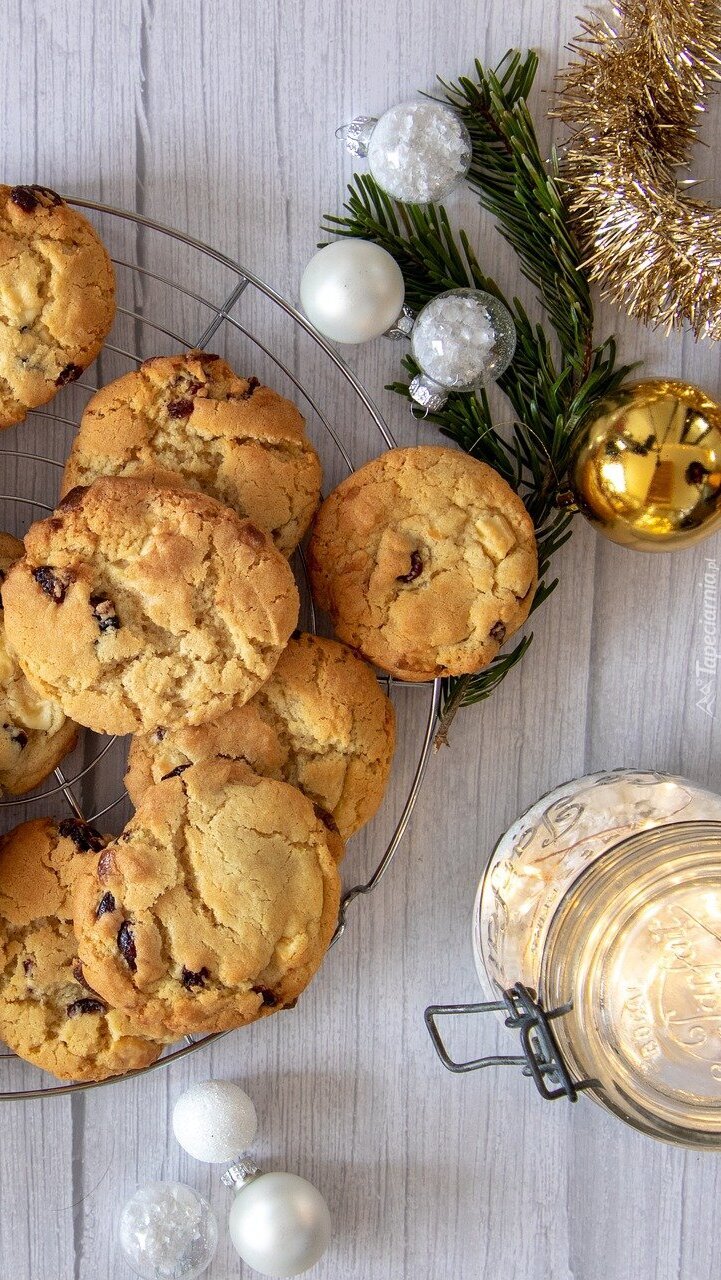 Edytor tapety: Świąteczne ciasteczka obok bombek
