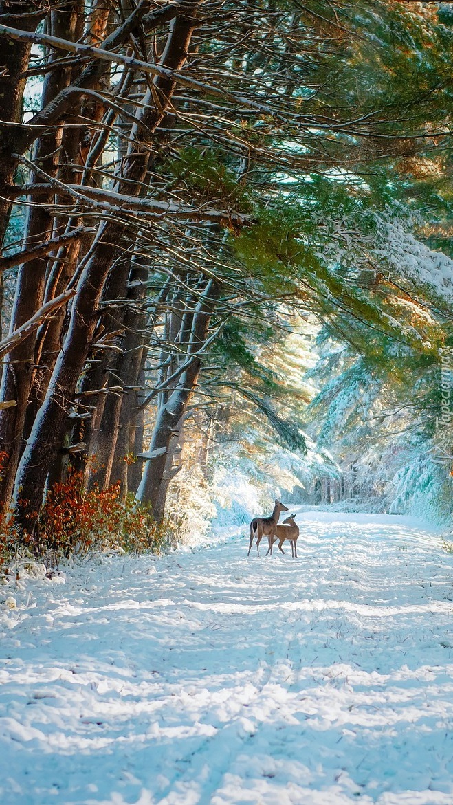 Edytor tapety: Sarny w zimowym lesie