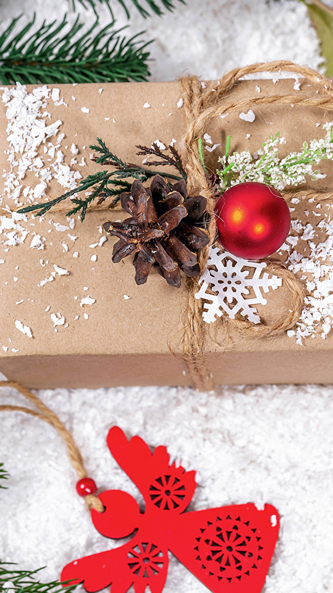 Edytor tapety: Aniołek obok świątecznego prezentu
