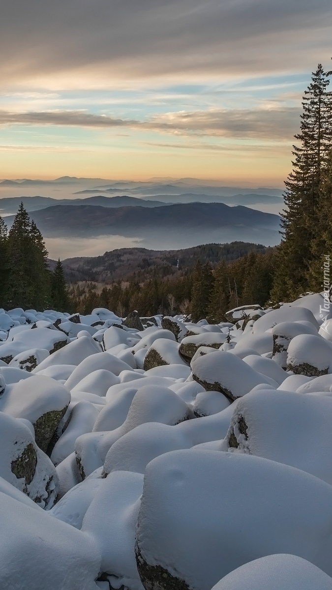 Edytor tapety: Czapy śnieżne na kamieniach