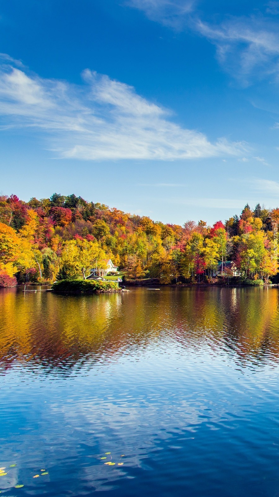 Edytor tapety: Domy wśród drzew nad jeziorem Greenwood