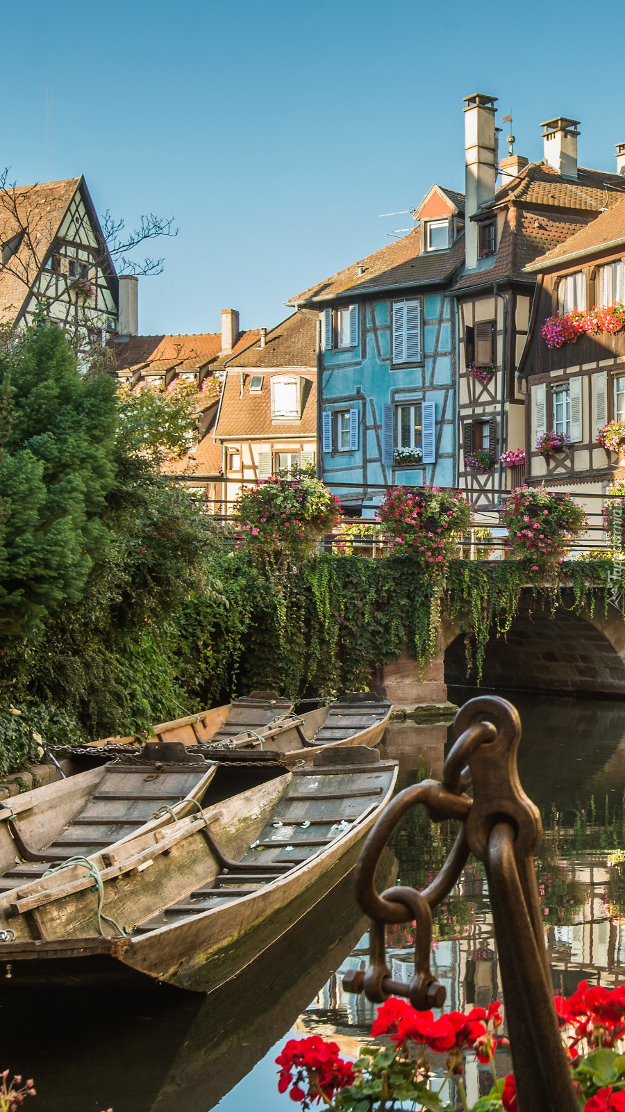 Edytor tapety: Łódki na rzece Lauch w Colmar