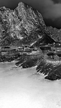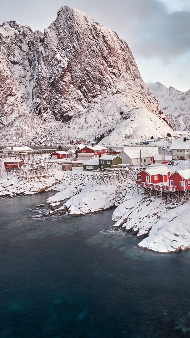 Edytor tapety: Czerwone domki na Lofotach zimą