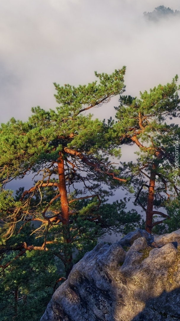 Edytor tapety: Sosny na skałach