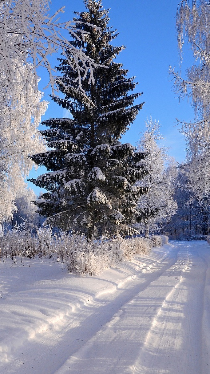 Edytor tapety: Droga w zimowym lesie