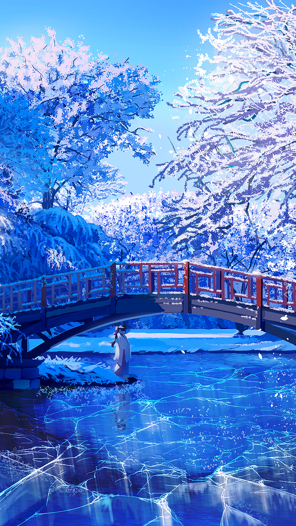 Edytor tapety: Most nad zamarzniętą rzeką w grafice