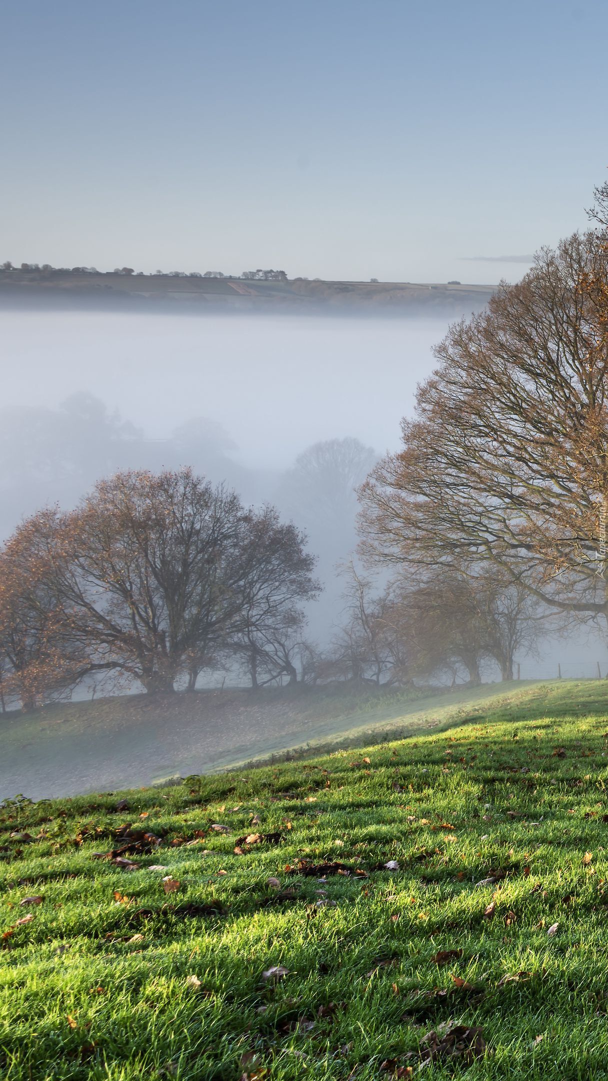 Edytor tapety: Zamglone drzewa na wzgórzu