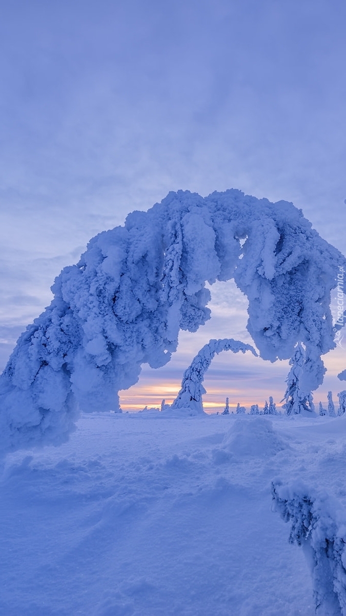 Edytor tapety: Ośnieżone i pochyłe drzewa