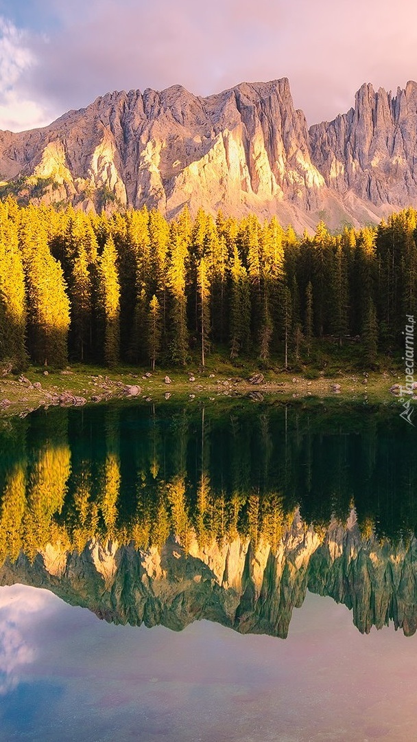 Edytor tapety: Odbicie góry Latemar w jeziorze Karersee