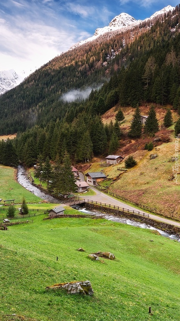 Edytor tapety: Droga wzdłuż rzeki w dolinie