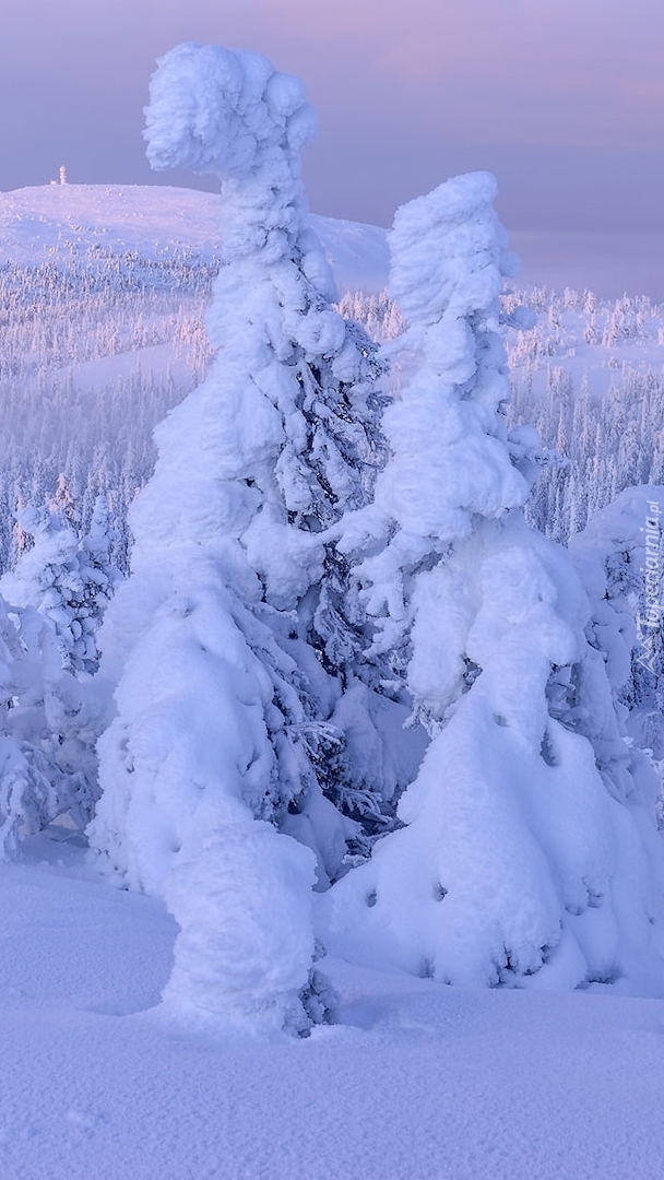 Edytor tapety: Ośnieżone drzewa na wzgórzu
