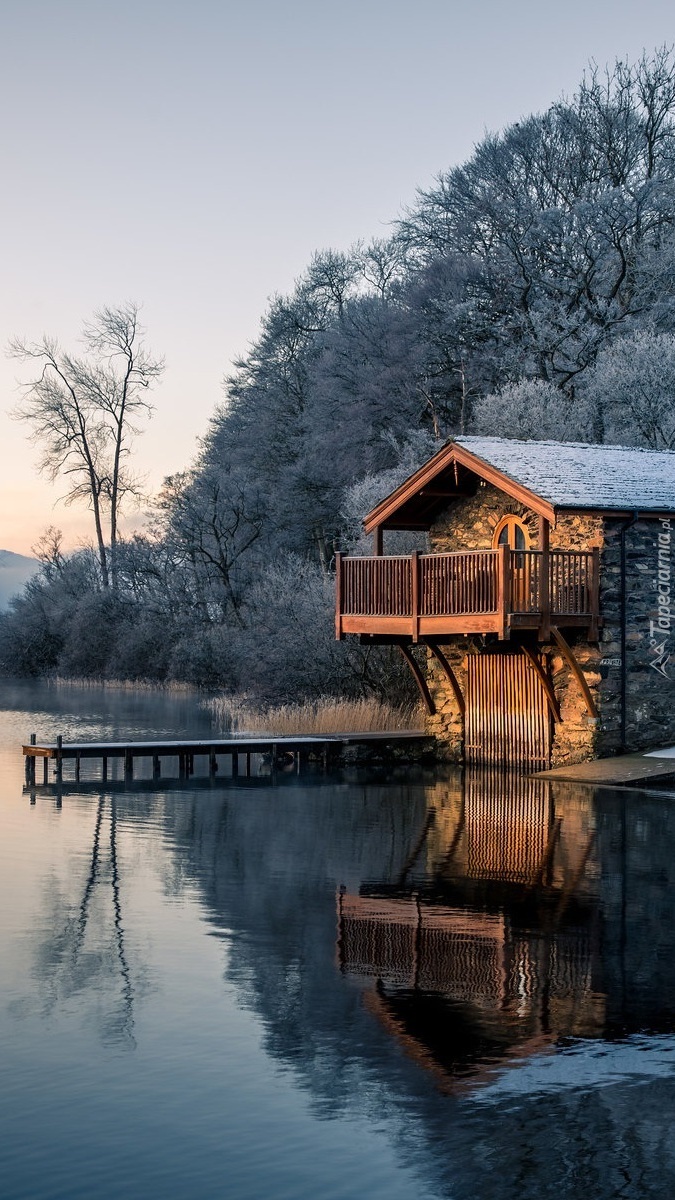 Edytor tapety: Dom z pomostem nad jeziorem