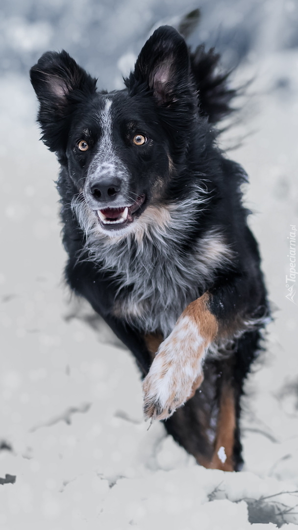 Edytor tapety: Border collie na śniegu