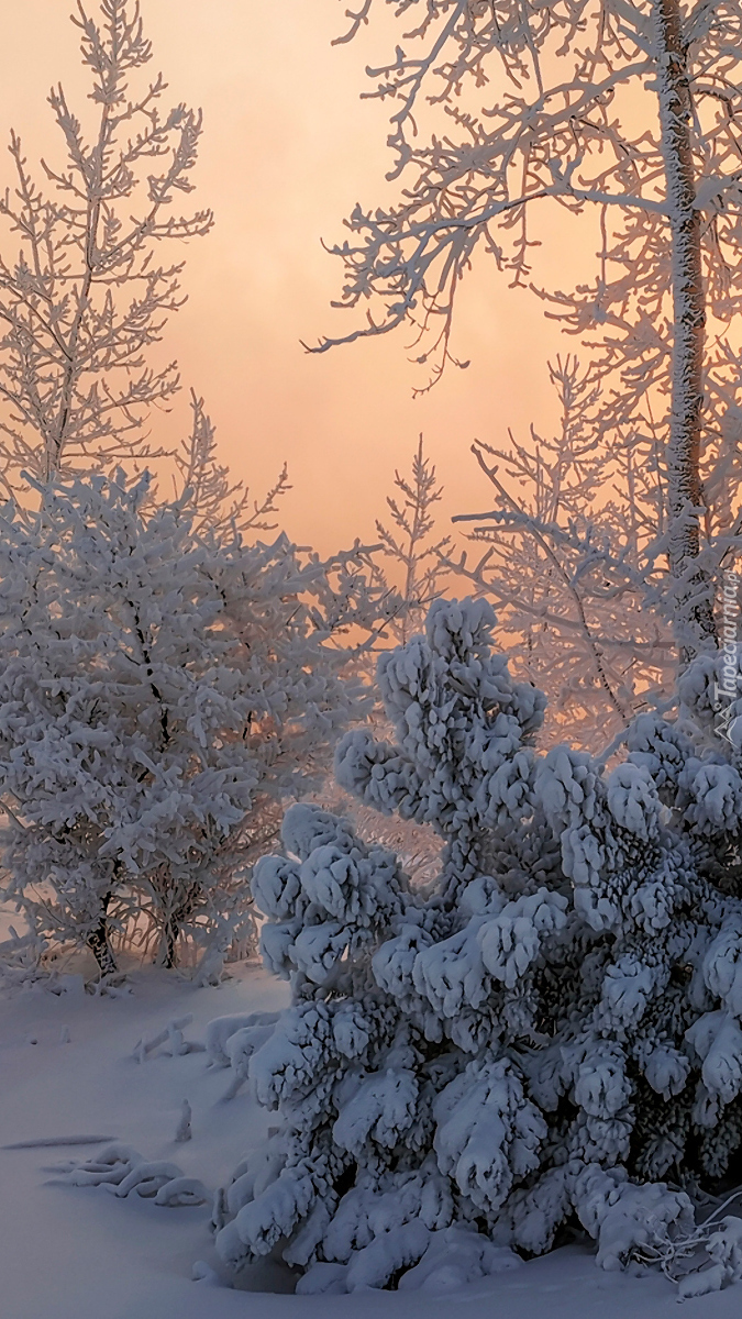 Edytor tapety: Zaśnieżone krzewy i drzewa